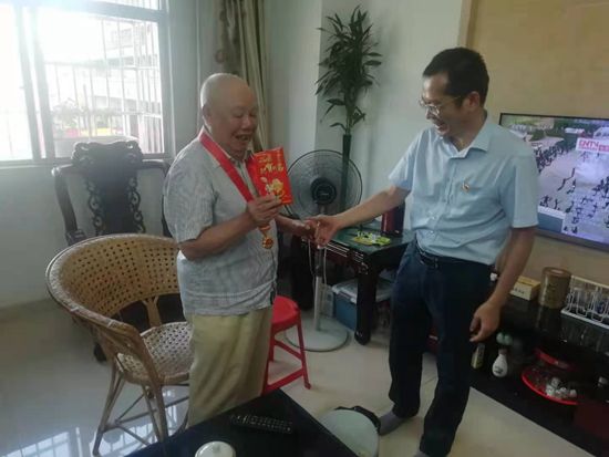 省旅投公司黨委書記、董事長(zhǎng)陳鐵軍、省旅投公司黨委委員、海汽控股公司、股份公司黨委書記、董事長(zhǎng)劉海榮看望慰問老黨員鄭克發(fā),為他頒發(fā)、佩戴“光榮在黨50年”紀(jì)念章